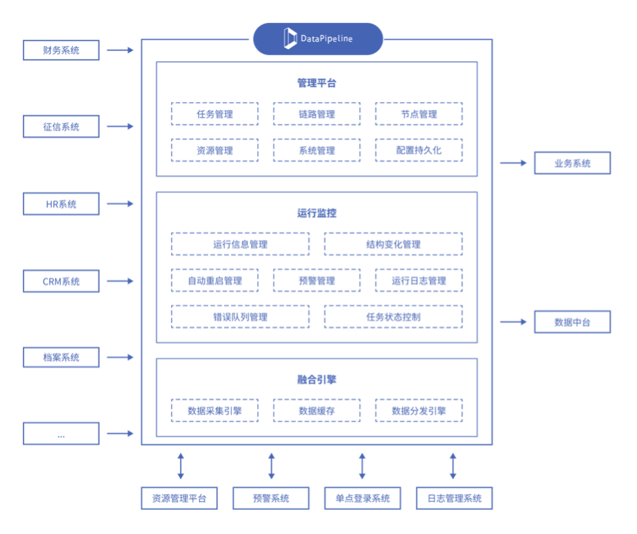 该产业金融服务机构携手DataPipeline构建的企业级实时数据融合平台为数据中台提供了基础融合能力。统一的数据集成管理功能为各类数据创新应用、数据中台等提供实时、准确的数据变化,从而使得客户可以根据最新数据进行运营管理与决策制定。