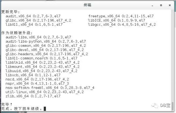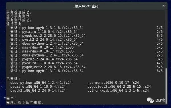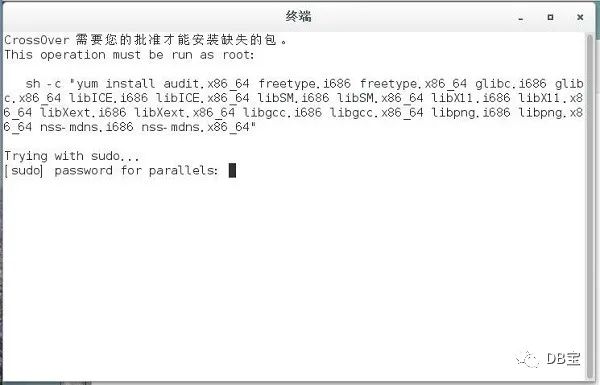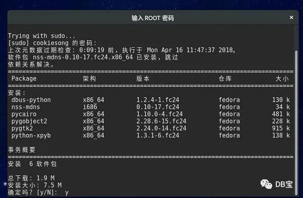 5、由于安装的程序有缺失的包,所以会自动跳出终端,来安装缺失的包,输入开机密码,然后在询问是否继续的时候输入“y”,最后完全结束之后按下回车键即可;
