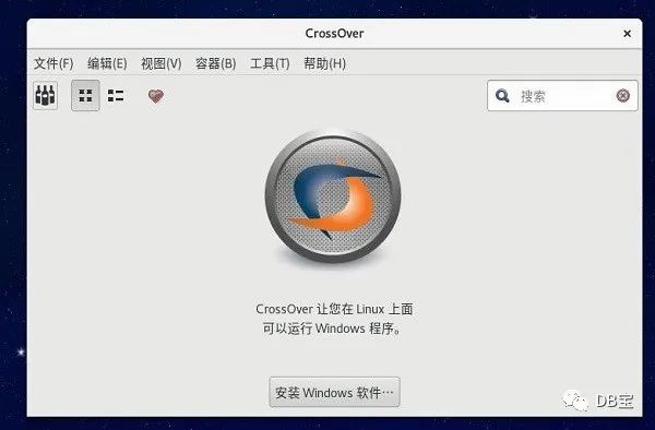 6、然后已经安装好的 CrossOver 就会自动跳出来,这也表示我们可以在 CentOS 中安装 Windows 软件了。