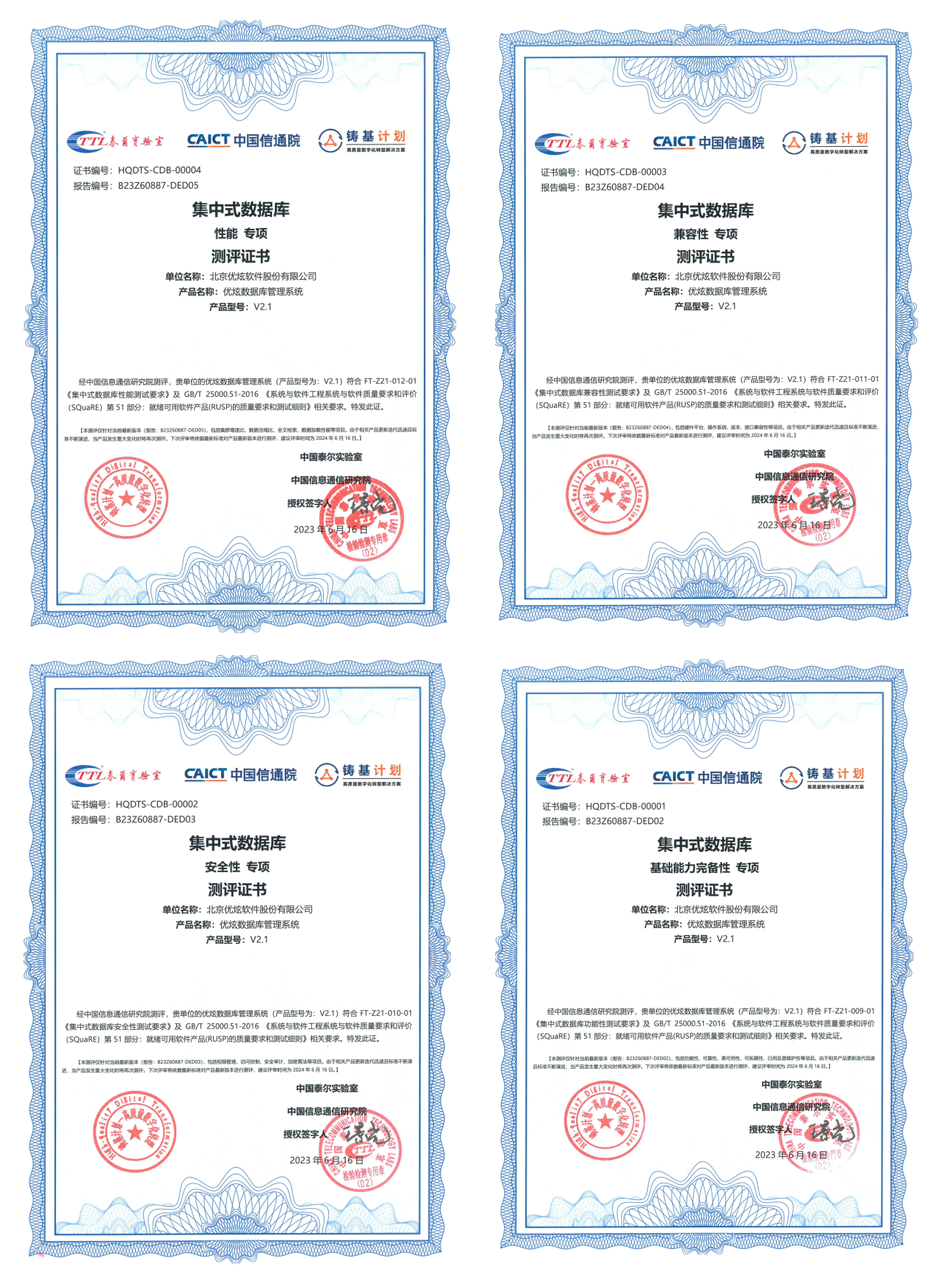 2023年6月,优炫软件正式通过了由中国信通院“铸基计划”发起的集中式数据库专项评估。此次中国信通院“铸基计划”集中式数据库测评主要关注于功能完备性、安全性、兼容性、可靠性四个维度开展测评。评测结果表明,优炫数据库管理系统,均满足相关指标要求。