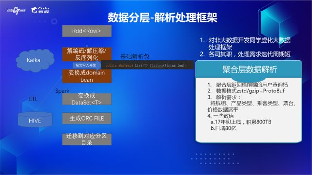 数据在同步至数据ods层后,产品经常会提的一个需求是将ods层某个含报文字段的表按照字段设计展开,如果要支持此类需求,数据开发就需要了解生产上这个表各个字段含义及报文字段的契约定义,而这些对应表的写入开发非常熟悉。因此,为了提高整体的工作效率,我们开发了一套数据解析框架,对业务开发封装了大数据组件的API调用及相关参数调整,让业务开发更高效地完成熟悉的单条数据解析开发。