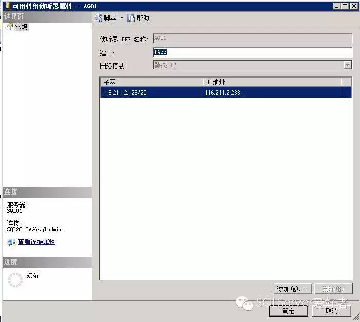 若数据库较大,建议先在辅助副本上恢复最新的完整备份+日志备份,恢复过程请用with norecovery!然后利用“添加数据库”向导,在初始数据同步的时候选择“仅联接”,以加快初始化速度。