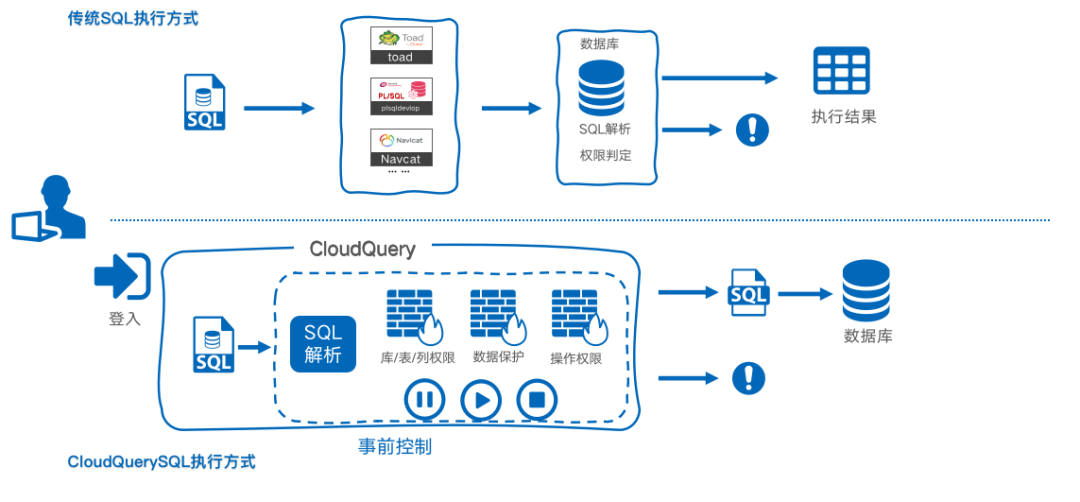 CloudQuery 2.x 系列通过多维度的权限体系,满足用户对数据安全管理和访问控制的需求。连接管理和授权管理的拆分,实现对连接和资源的管控与纳管,以及对资源的授权管理。数据保护功能包括数据脱敏和数据过滤,通过前置规则和后置规则对敏感数据进行处理和结果集的筛选。
