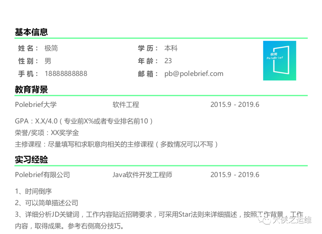 简约的风格,求职信息一目了然,告别花哨的外表。