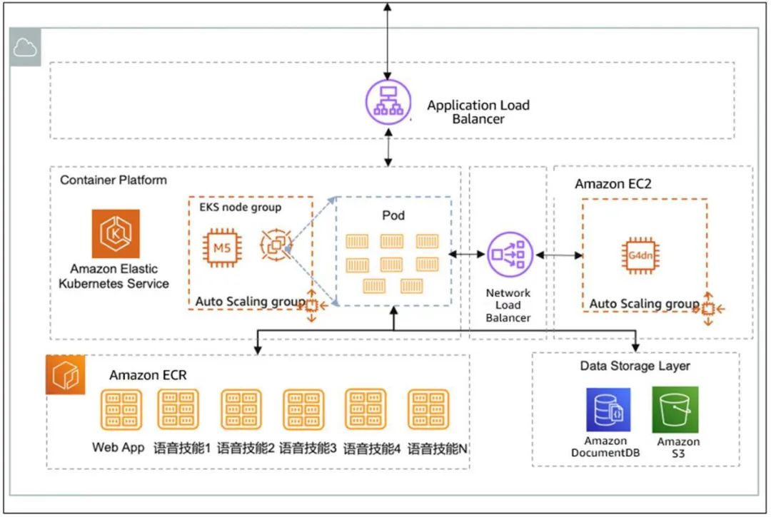 基于亚马逊云科技的海外车载语音平台架构示意图