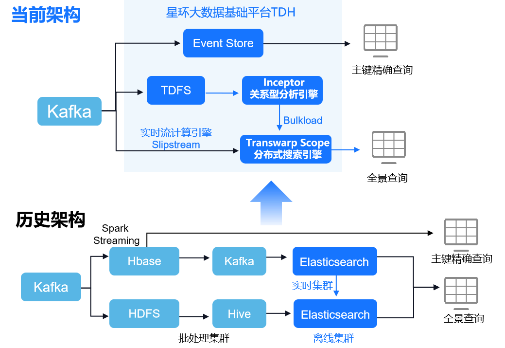 因此,该用户利用星环科技分布式搜索引擎Transwarp Scope替换掉了Elasticsearch,实现了实时和离线业务的统一,通过bulkload和实时流计算引擎Slipstream实现了数据的统一存储和查询。