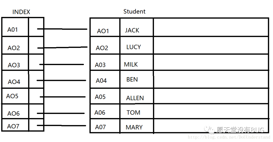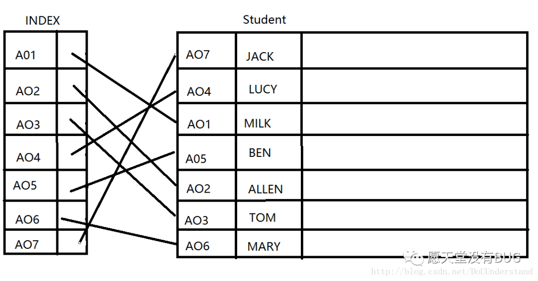非聚集索引:索引顺序与物理存储顺序不同