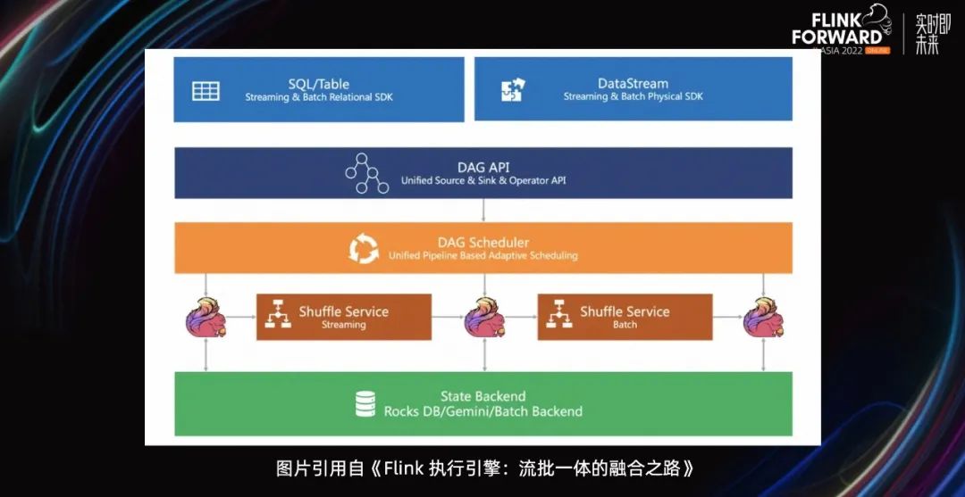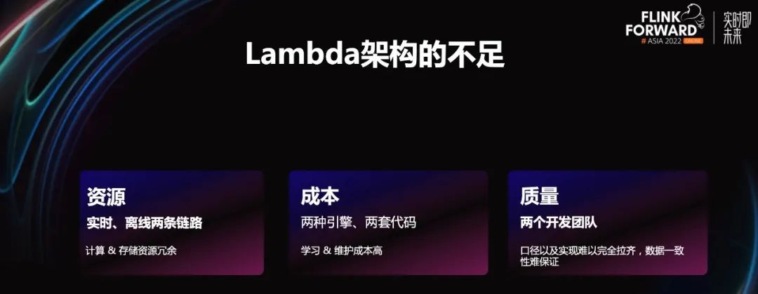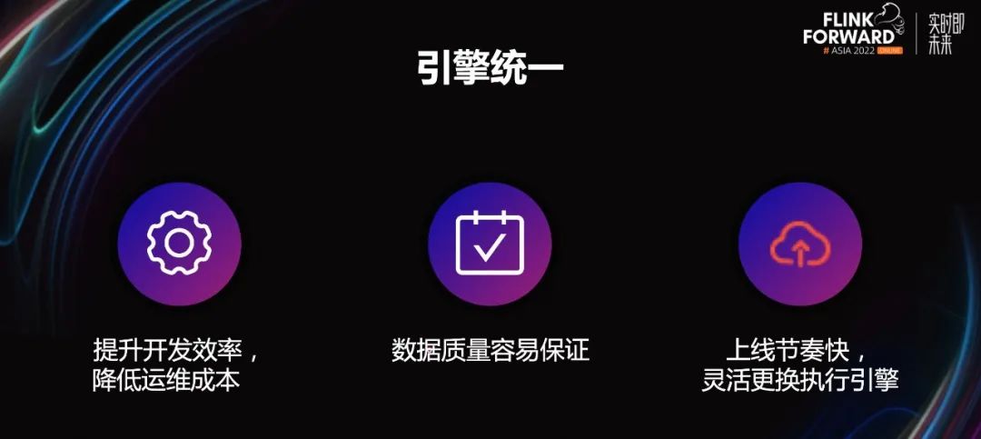 当然缺点也很明显,实时计算和离线计算两条链路,存储不能复用,所以资源冗余严重。然后,两种计算引擎,离线计算一般使用 Spark,实时计算使用 Flink,那么就要学习和维护两套代码,成本较高。一般实时和离线又是两个团队开发和维护的,那么实现细节和口径难以统一,所以经常会有结果对不上的情况。因此,业务同学也非常希望实现流批的统一。1.2 引擎统一