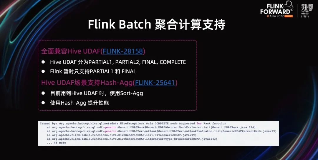 为了方便平滑迁移聚合类作业,Hash Agg 和完整 Hive UDAF 的支持都非常必要。