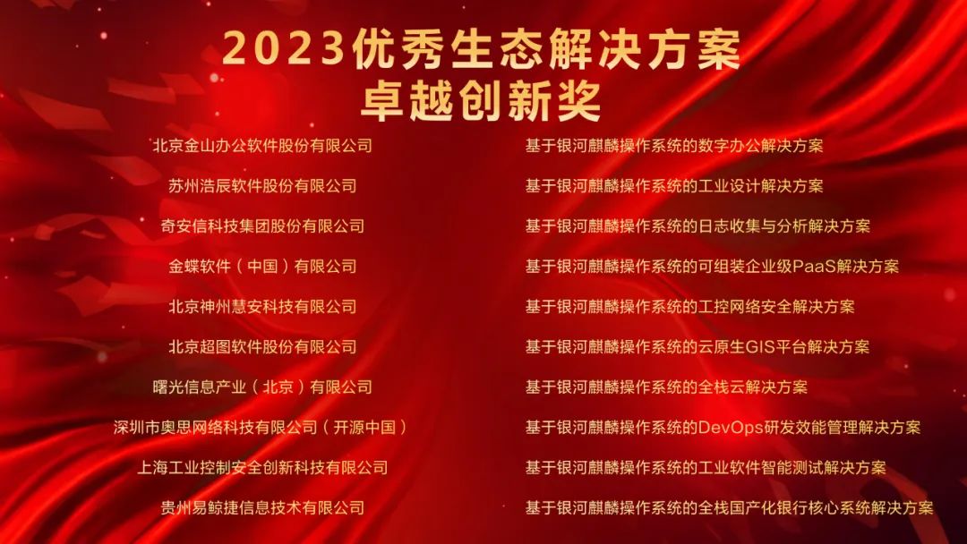 在刚刚结束的2023操作系统产业大会上,麒麟软件正式发布基于麒麟操作系统的《数字政府自主创新解决方案白皮书》、《教育信息化解决方案白皮书》,并公布基于麒麟操作系统的优秀解决方案评选结果。集众家所长、助产业创新,麒麟操作系统为千行百业数字化建设贡献中国力量!