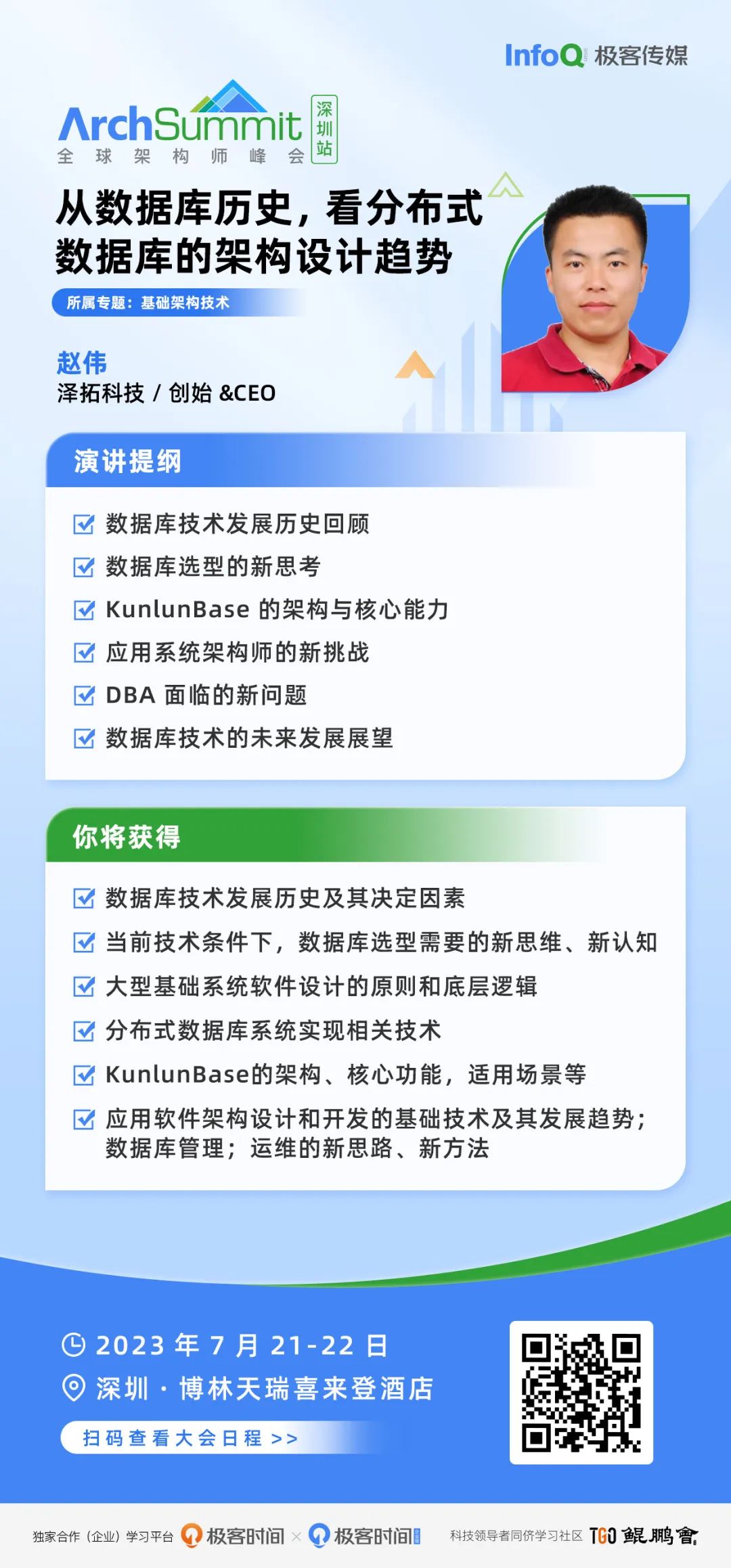 在这场架构师大会上,KunlunBase将会分享《从数据库历史,看分布式数据库的架构设计趋势》。