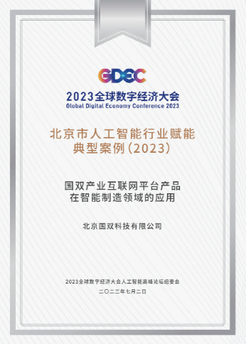 此次论坛以“智能涌现,重塑未来”为主题,得到了政府及行业相关部门的高度重视。论坛期间发布了一系列人工智能产业标杆案例及优秀应用成果,其中在”北京市人工智能行业赋能典型案例”发布中,国双以唐山中车工业互联网项目作为典型案例厂商成功入选。