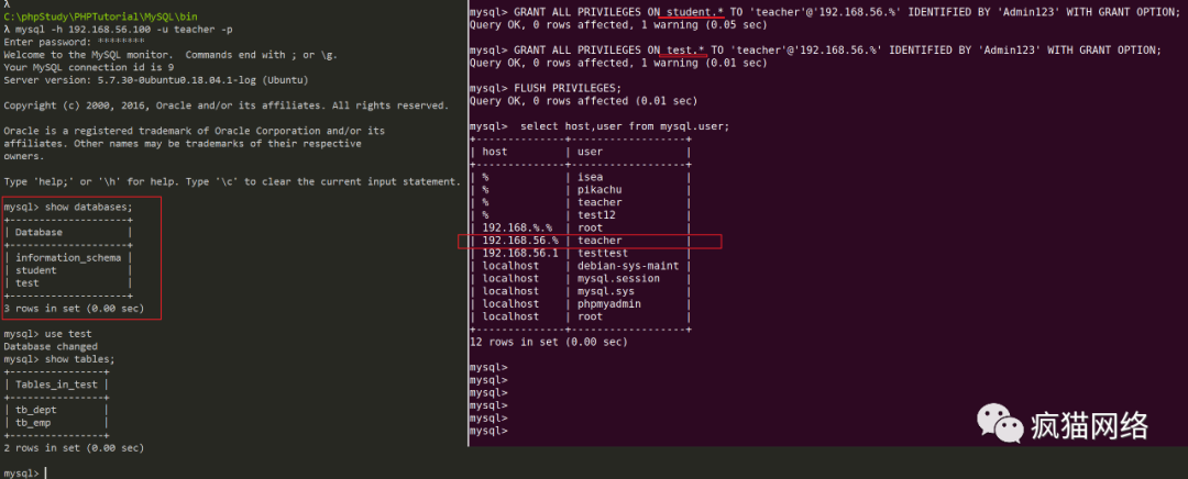删除了默认数据库TEST。(旧版本会有默认的测试数据库)