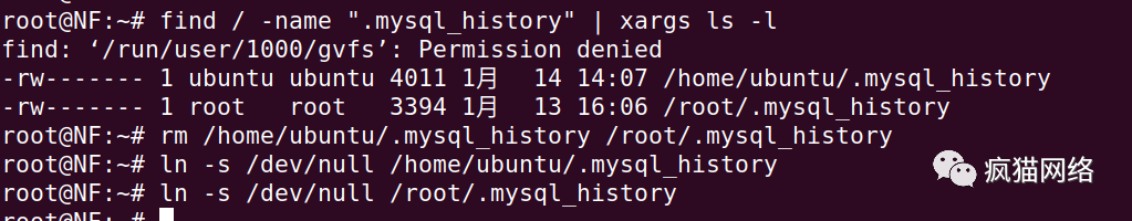 检查所有.mysql_history文件是否链接到dev/null,若没连接到,则以root用户执行如下命令:
