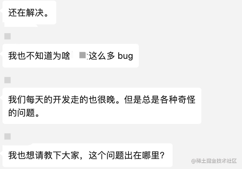 所以大家觉得是谁应该背锅?是开发的能力不够,还是测试用例的覆盖缺失?说起来,其实在此之前,我在掘金也遇到了一个 “Bug” ,比如: