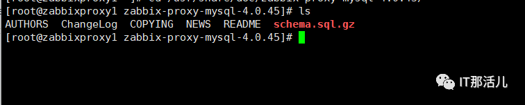 [root@proxy01 ~]#cd /usr/share/doc/zabbix-proxy-mysql-4.x.x/ #进入数据库模板所在目录