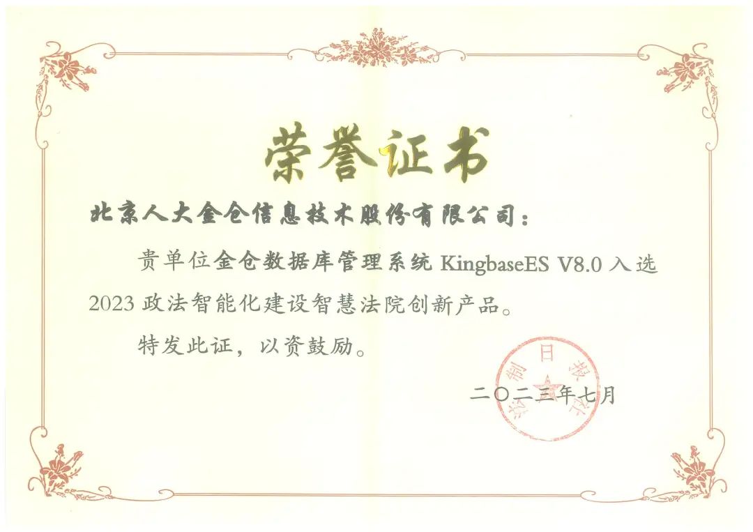 7月10日至11日,由法制日报社、北京安全防范行业协会主办的“2023政法智能化建设技术装备及成果展”在京顺利举办。人大金仓受邀分享信息技术应用创新实践成果,并入选2023政法智能化建设智慧法院创新产品。