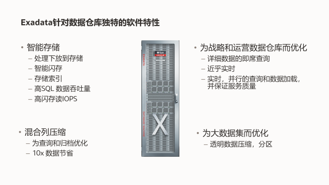 另一个具备HTAP能力的产品就是大家所熟知的Exadata。Exadata兼具OLTP和OLTP能力,非常适合数据库整合或数据库资源池的场景。