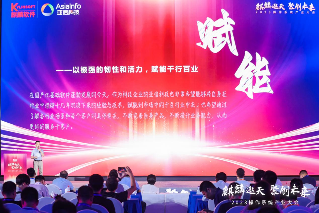 7月5日,以“麒麟遨天 聚创未来”为题的2023操作系统产业大会在中关村国家自主创新示范区展示交易中心顺利召开。亚信科技作为麒麟软件亲密的合作伙伴受邀参会,AntDB数据库生态负责人在会上进行了《与您携手,共建网信生态》的精彩演讲,与政、产、学、研、用全产业链伙伴共话数字产业发展趋势,共享数字化转型经验,共赴网信新征程!