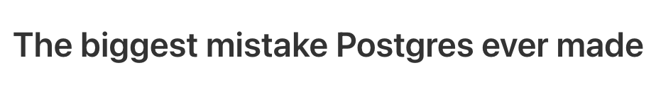 为什么 Uber 从 Postgres 迁移到 MySQL: https://www.uber.com/en-SG/blog/postgres-to-mysql-migration/ 我们最讨厌的 PostgreSQL 部分: https://ottertune.com/blog/the-part-of-postgresql-we-hate-the-most/
