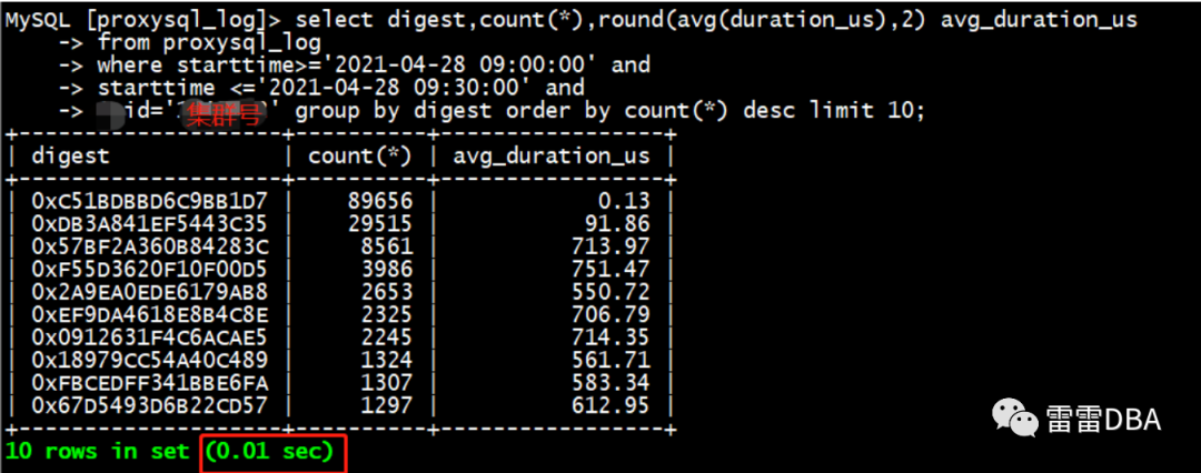 举例:分析某30分钟某集群的SQL执行情况,按照次数排序,查询很快~