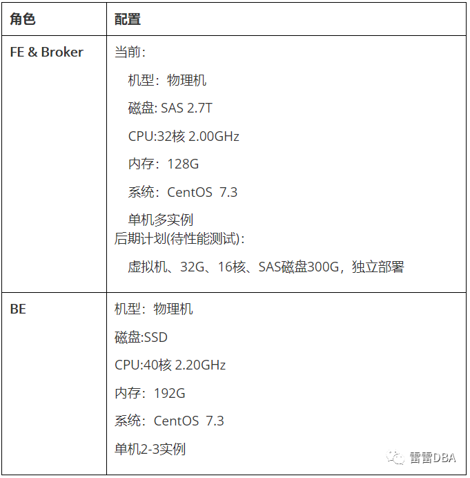 因缺少一定的运维经验,先暂时使用如下机器进行部署,后期会考虑将FE节点使用虚拟机部署