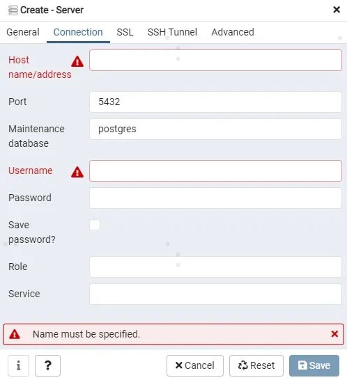 需要注意的是: 这里的pgadmin和postgresql是分别部署在两个docker容器中的。pgadmin连接的相当于是另一个docker中的数据库,所以在配置Host name/address时,IP地址不是docker主机服务器的IP ,而是docker分配给postgresql实例的内部IP地址。