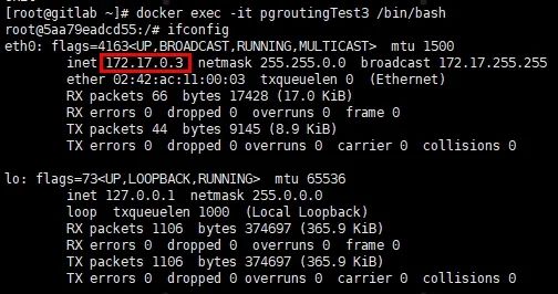 $ docker exec -it pgroutingTest3 bin/bash
