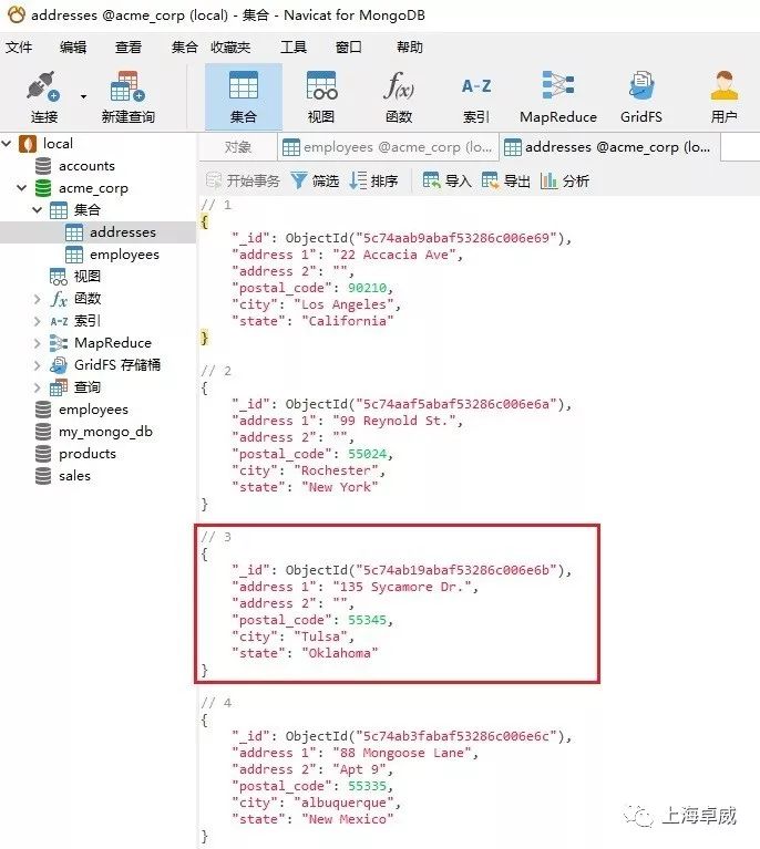⦁ DBRef 需要地址文档的 $id 字段。你可以在地址集合中找到。只需从“135 Sycamore Dr.”地址文档中复制: