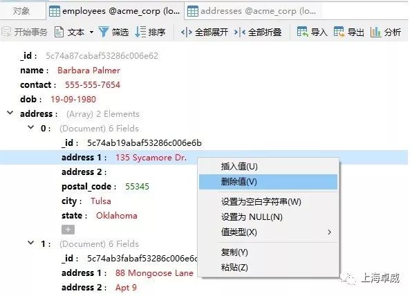 让我们通过删除嵌入字段并将其替换为 DBRef 来修改上周文章中 Barbara Palmer 的地址信息。
