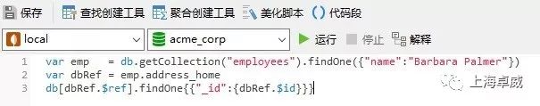 现在我们已经更新了雇员文档以使用 DBRefs,我们将不得不改变从 employees 集合中提取数据的方式。下面的代码动态地在由 $ref 参数(在我们的例子中为 address_home)指定的集合查找具有由 DBRef $ id 参数指定的 id 的文档: