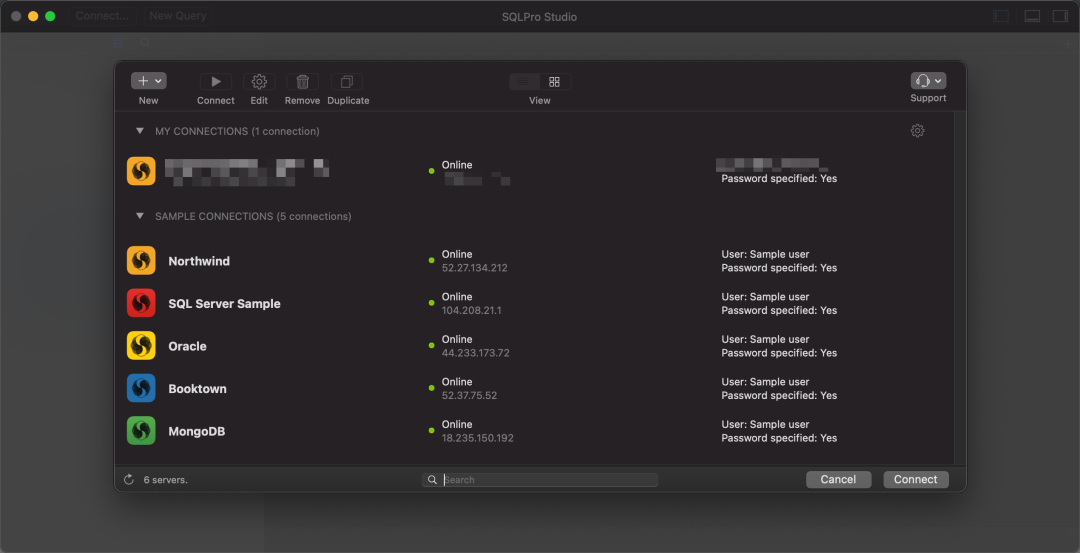 SQLPro Studio可以帮助我们在Mac电脑上实现数据库的可视化管理,目前支持SQL Server, Postgres, Oracle 以及MySQL等主流的数据库。