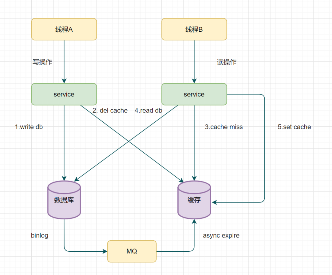 2. 线程B再发起一个写操作,第二步更新了数据库
