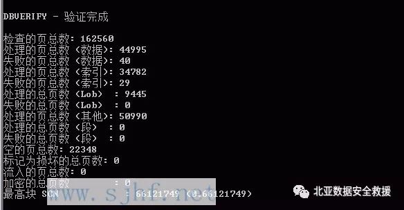 分析结果发现SYSAUX01.DBF文件数据块(Data)检测失败40页,索引页(Index)检测失败29页,说明SYSAUX01.DBF存在坏块。
