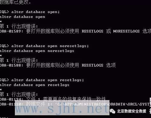 再次执行alter database open 命令,数据库打开。