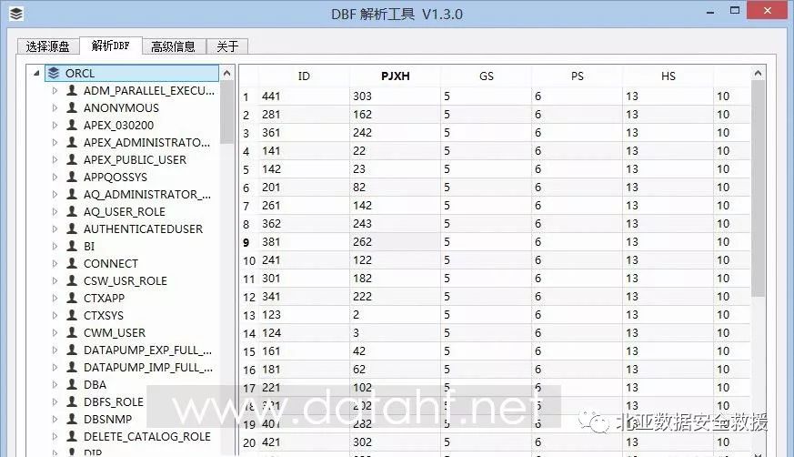 2.4.4使用北亚自主研发DBF解析工具的,获取数据。结果如下: