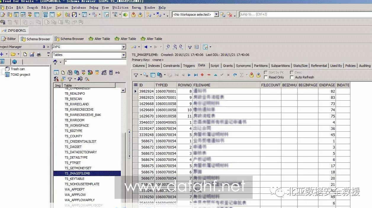 使用toad for oracle工具验证数据