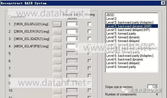 3、 分析每个硬盘的数据,根据分析的结构重组RAID 阵列。