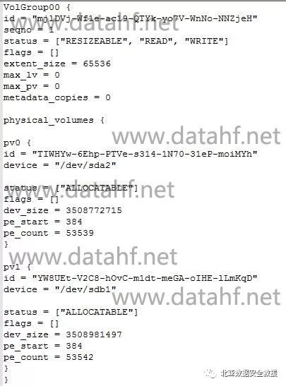 4、 分析重组完的阵列,找到LVM信息,重组LVM卷。