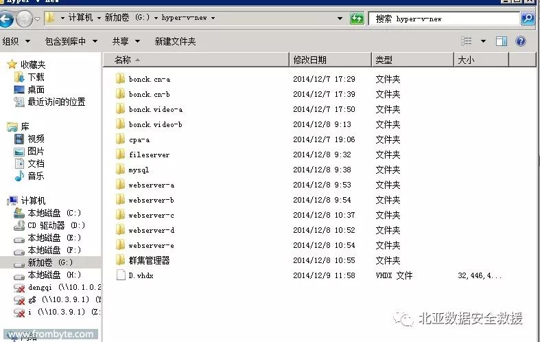 由于MD3200存储中虚拟机的数据文件丢失,导致整个Hyper-V服务瘫痪,虚拟机无法使用,故障环境为Windows Server 2012服务器,系统中部署了Hyper-V虚拟机环境,虚拟机的硬盘文件和配置文件放在朝阳区某托管中心托管的DELL MD3200存储中(注:硬盘600G*4,4T*1)。MD3200存储是由4块600G硬盘组成的阵列,用作存储虚拟机的数据文件。单块4T硬盘用作虚拟机数据文件的备份。