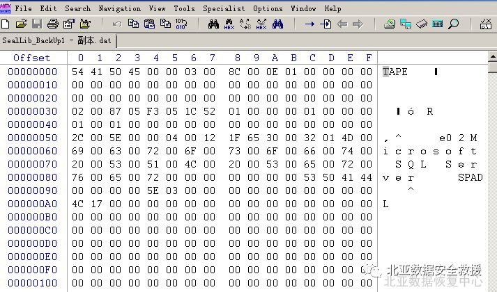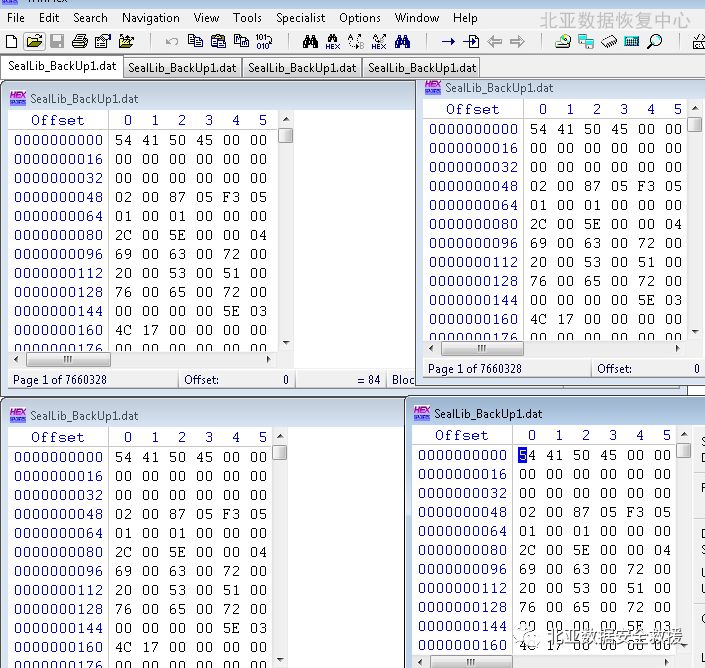 在恢复过程中,在E盘发现2个SealLib数据库的备份文件。但是备份文件数据中页结构有小部分损坏,
