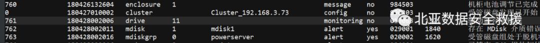提取V7000存储的日志,通过分析日志得到各故障硬盘的离线顺序。