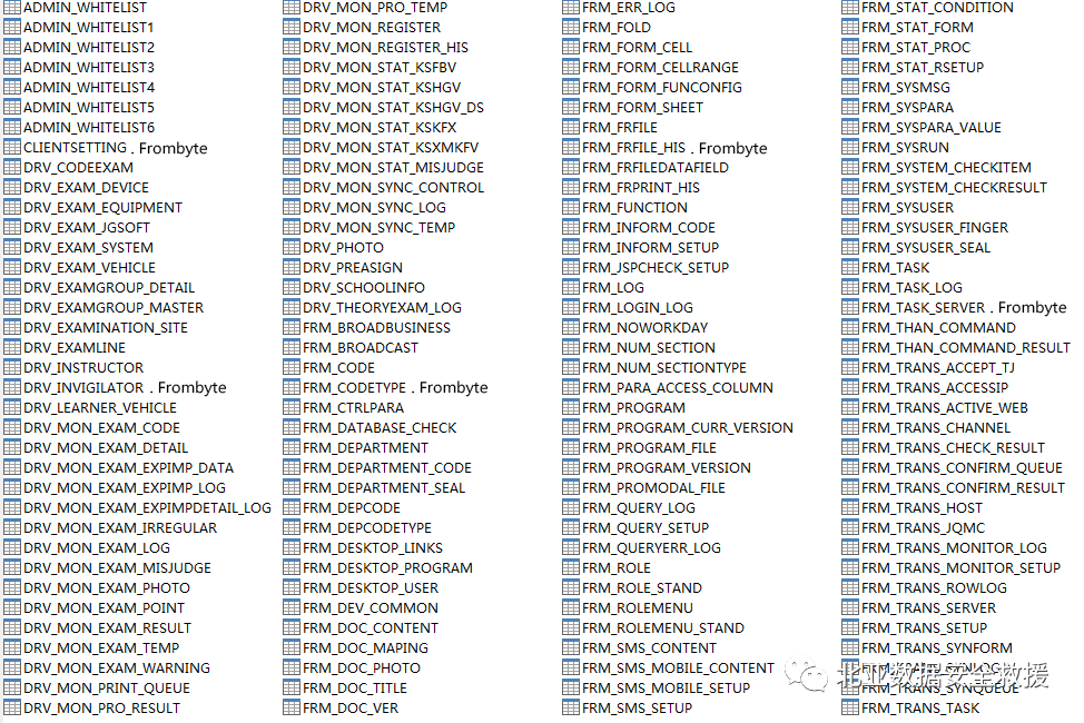 3、启动Oracle数据库,并交由用户进行数据验证(部分数据表如图)。