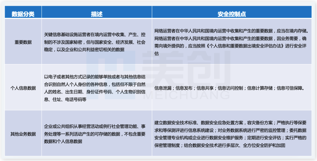 以安全保护维度为例,根据《信息安全技术 数据安全分类分级实施指南》要求,将数据分为三个大类,包括重要数据、个人信息数据、其他业务数据,如下表: