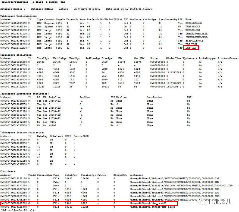 DMS_IDX为存放索引的表空间,万一发生极端情况出现损坏,可以通过rebulid index的方式恢复,最起码能保证数据不丢失。
