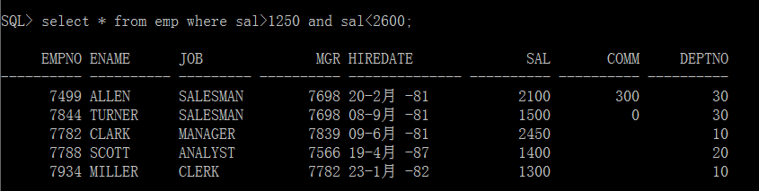=, >, <, >=,<=,!=,<>,any(任一),all(所有的)