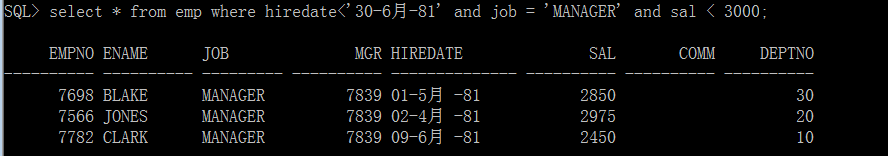 查询emp表中入职时间早于1981年6月30日,并且工作岗位是经理,但是工资低于3000的员工信息。