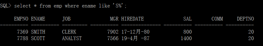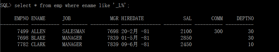 语法:select列名1,列名2from 表名 where字段 like条件;