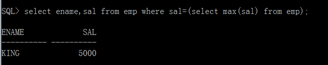 Select ename,sal from emp where sal=( select max(sal) from emp);