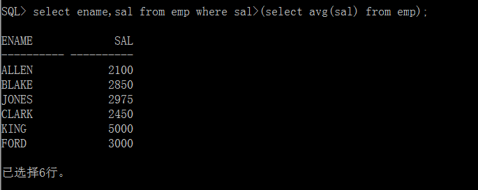 Select ename,sal from emp where sal>( Select avg(sal) from emp);